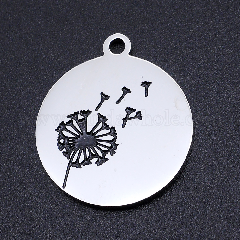 201 подвески травленые из нержавеющей стали, плоский круглый с одуванчиком