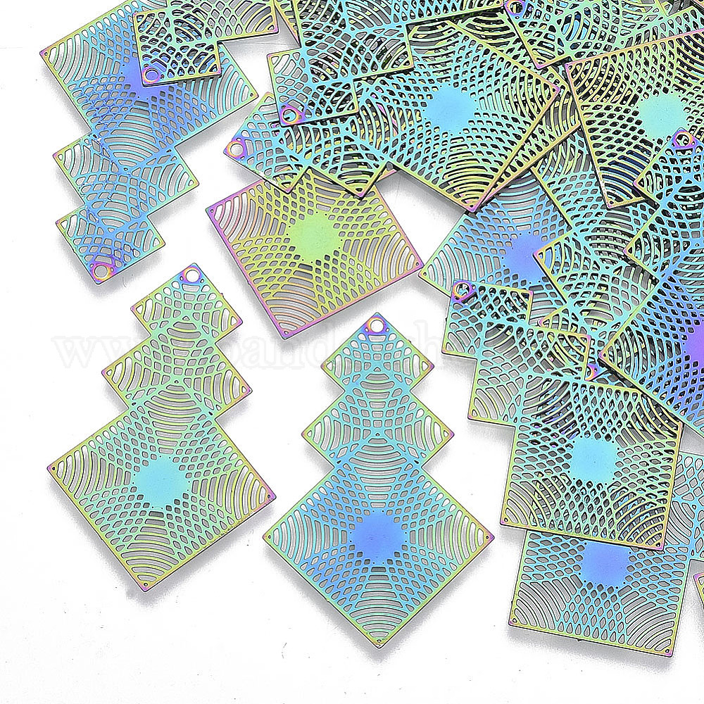 Ионное покрытие (ip) 201 филигранные подвески из нержавеющей стали, гравированные металлические украшения, ромб