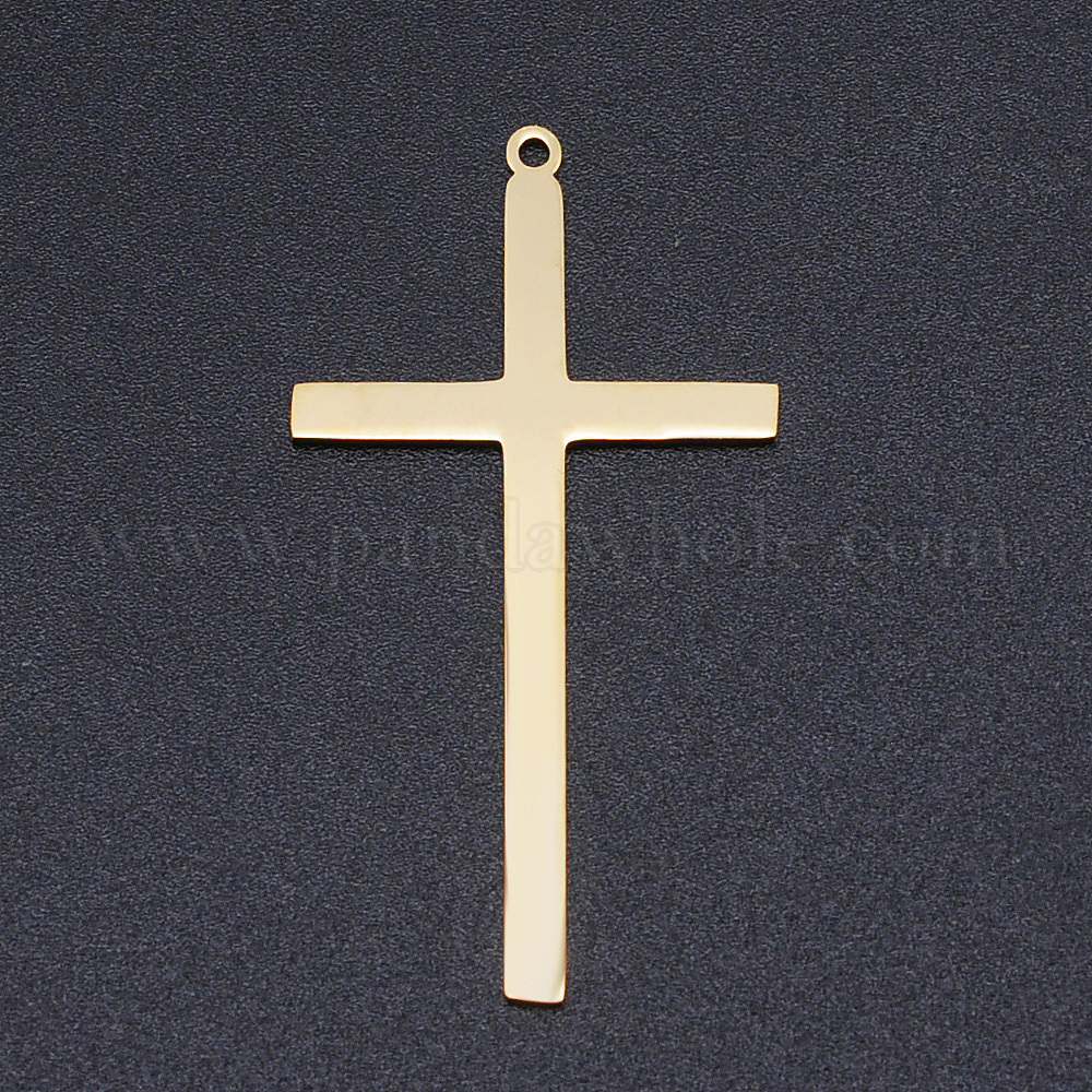 • Золотой 201 подвески из нержавеющей стали для лазерной резки, крестик, золотые, 44x24x1 мм, отверстие : 1.4 мм