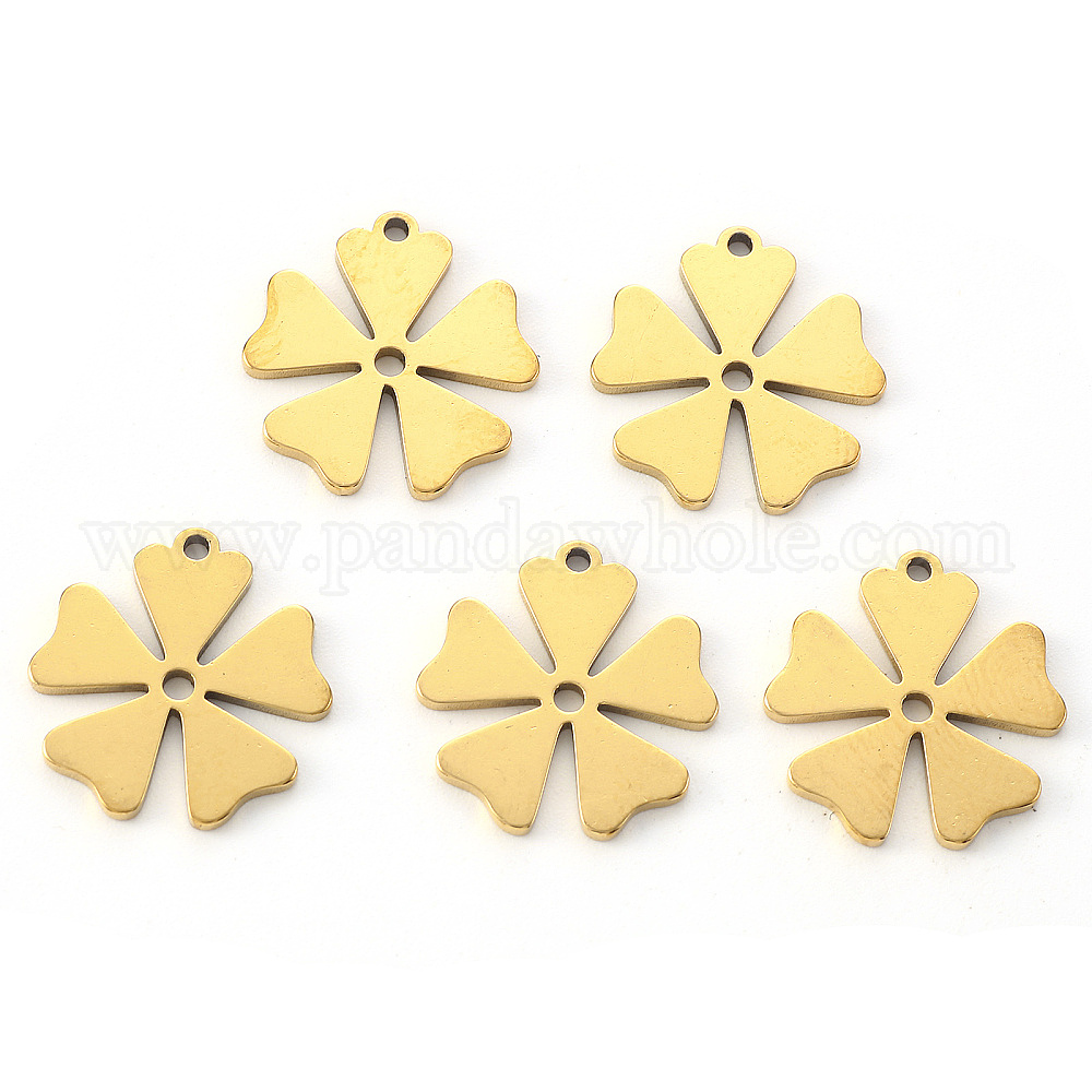 • Золотой Вакуумное покрытие pvd 201 подвески из нержавеющей стали, лазерная резка, цветок, реальный 18 k позолоченный, 16x15x1 мм, отверстие : 1 мм