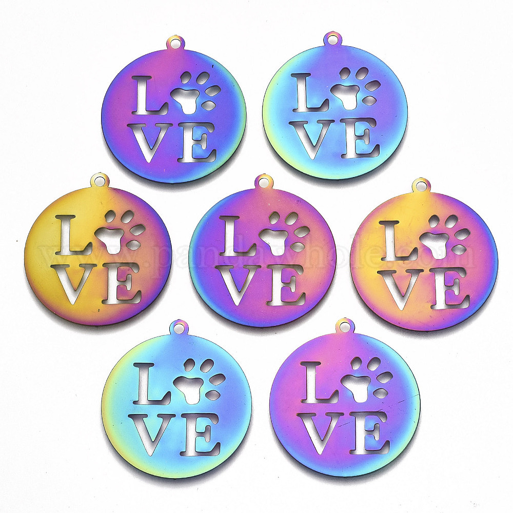 Ионное покрытие (ip) 201 подвески из нержавеющей стали для домашних животных, гравированные металлические украшения, плоский круглый со словом любовь и след собаки