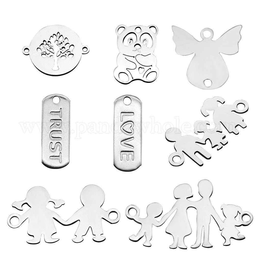 • Нержавеющая Сталь Цвет 201 подвески из нержавеющей стали, с соединителями ссылок, лазерная резка, разнообразные, цвет нержавеющей стали, 8 шт / комплект