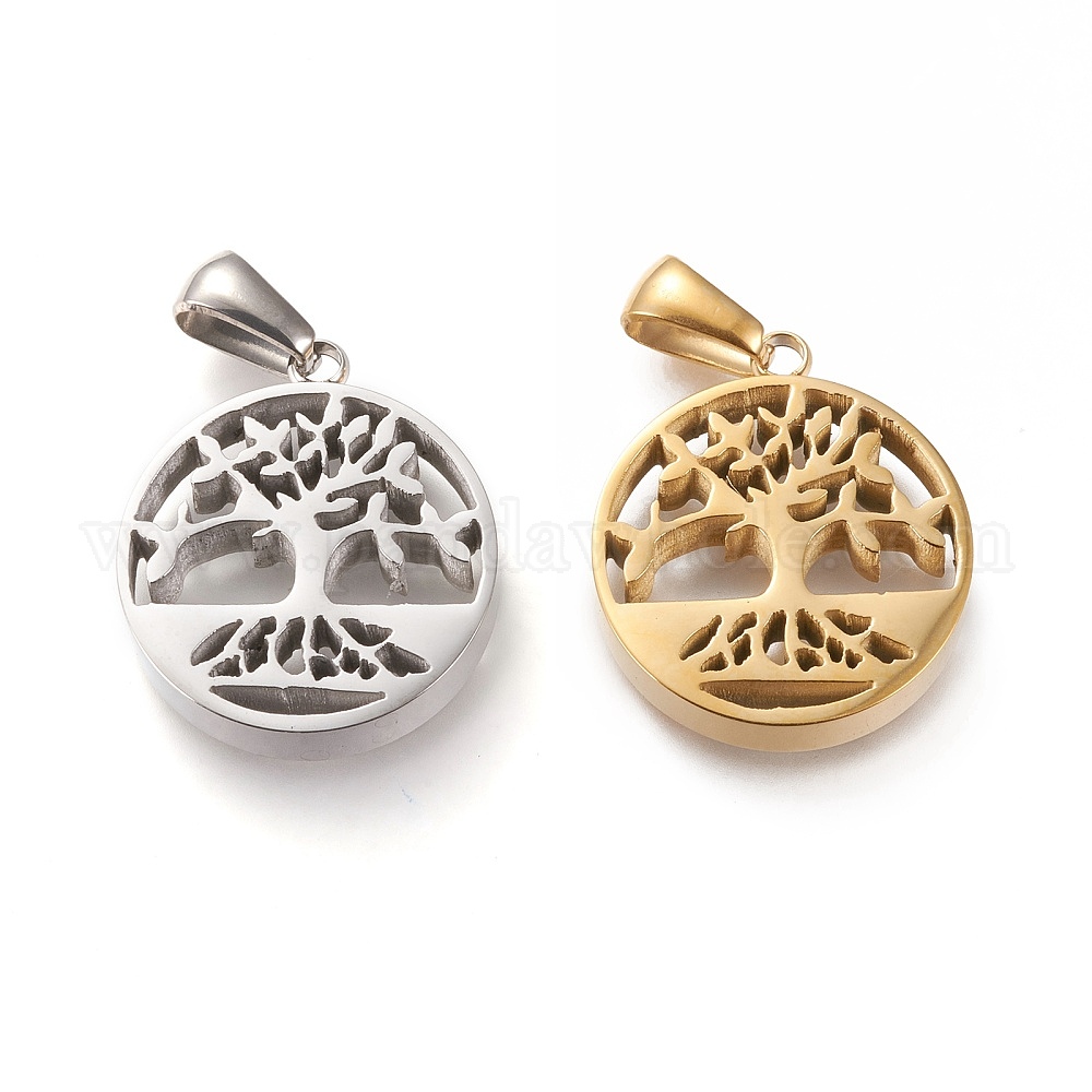 Ионное покрытие (ip) 304 подвески из нержавеющей стали, ручная полировка, плоский круглый с полым деревом жизни