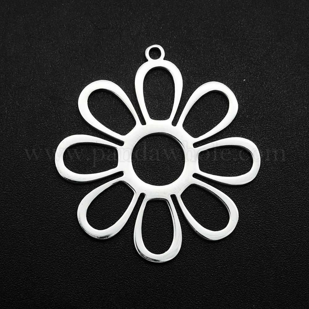 201 подвески из нержавеющей стали, лазерная резка, полый, цветок (024N8C)