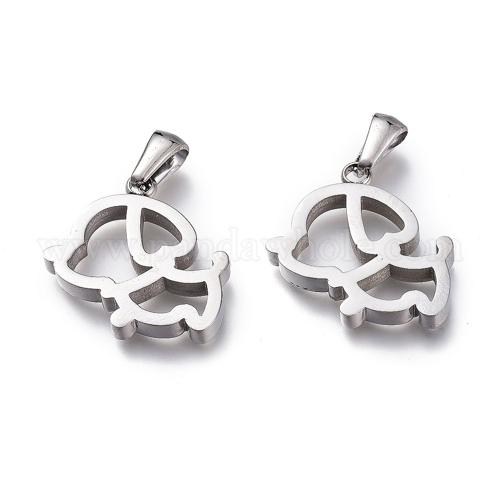 • Нержавеющая Сталь Цвет Устойчивые к потускнению 304 подвески из нержавеющей стали, ручная полировка, полый, собака, цвет нержавеющей стали, 20x20x3 мм, отверстие : 6x2.5 мм