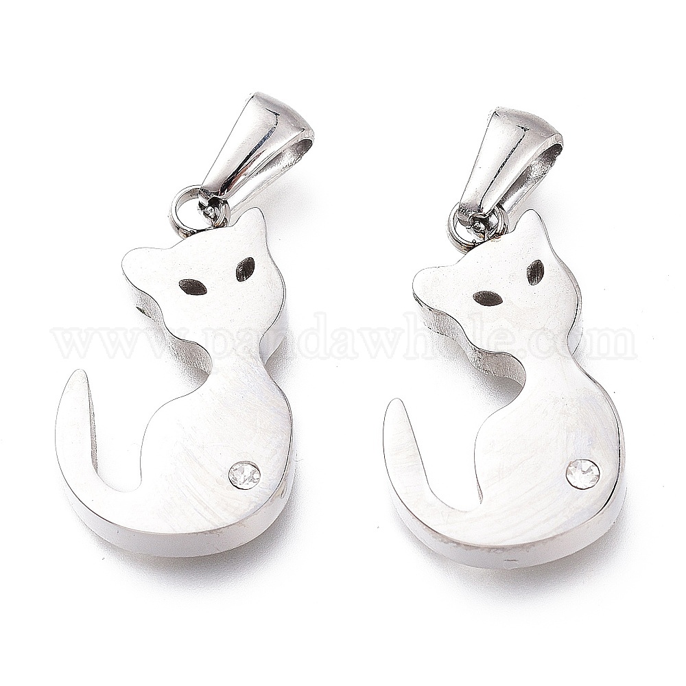Ионное покрытие (ip) 304 брелоки из нержавеющей стали, с кристально горный хрусталь, лазерная резка, ручная полировка, кошка