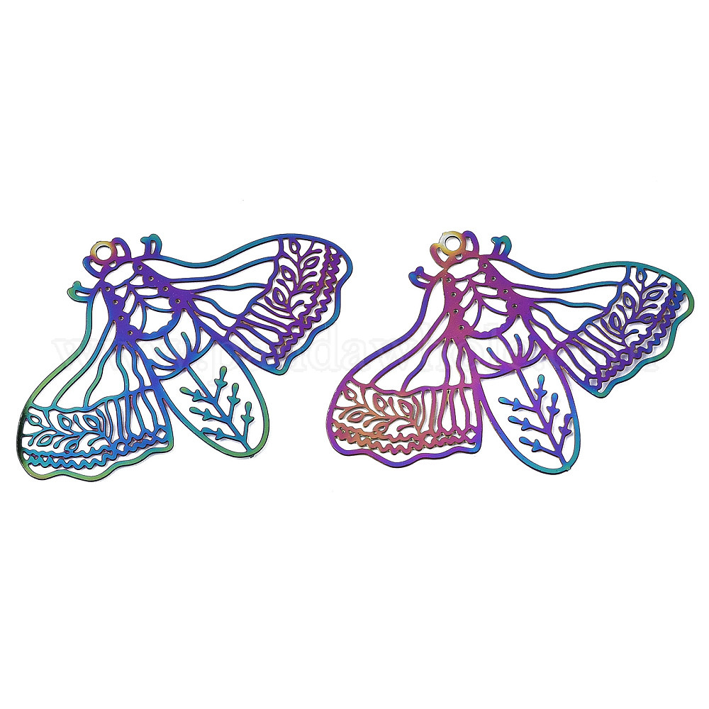 • Rainbow Color Ионное покрытие (ip) 201 филигранные подвески из нержавеющей стали, гравированные металлические украшения, пчела, Радуга цветов, 32x44x0.3 мм, отверстие : 1.6 мм