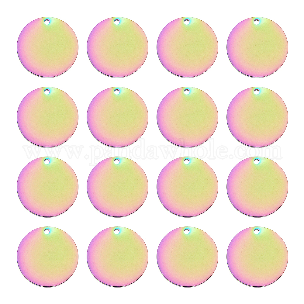 20шт. вакуумное покрытие pvd 304 подвески из нержавеющей стали, полированный, штамповка пустой метки, лазерная резка, плоско-круглые, радуга