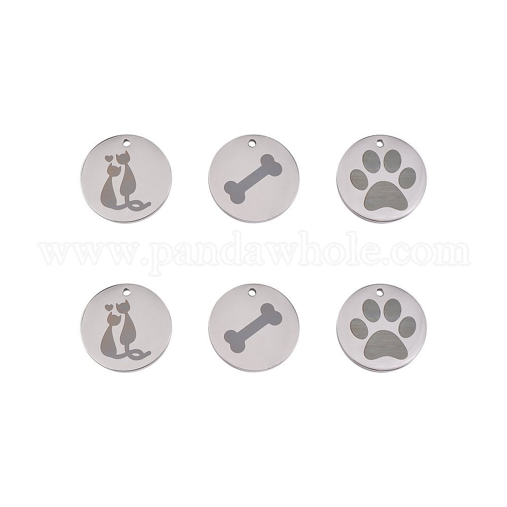 6 шт 3 стили 304 подвески из нержавеющей стали для домашних животных, лазерная резка, плоско-круглые