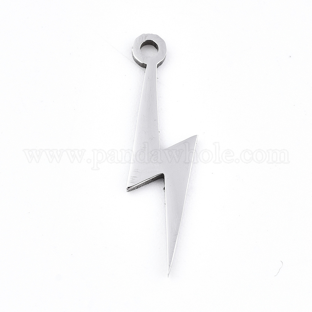 • Нержавеющая Сталь Цвет Не тускнеющие 201 подвески из нержавеющей стали, лазерная резка, молния, цвет нержавеющей стали, 20x6.5x0.9 мм, отверстие : 1.6 мм
