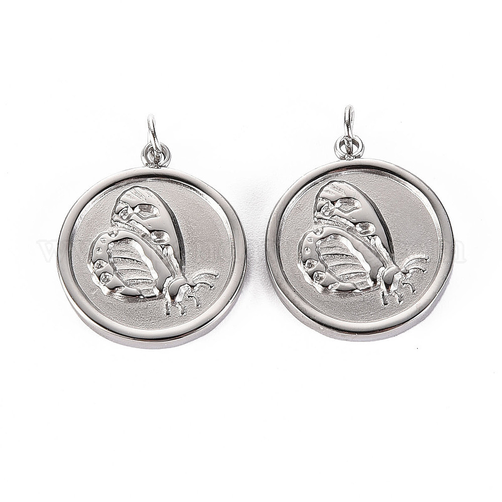 304 подвески из нержавеющей стали, с прыжковых колец, плоские круглые с бабочкой