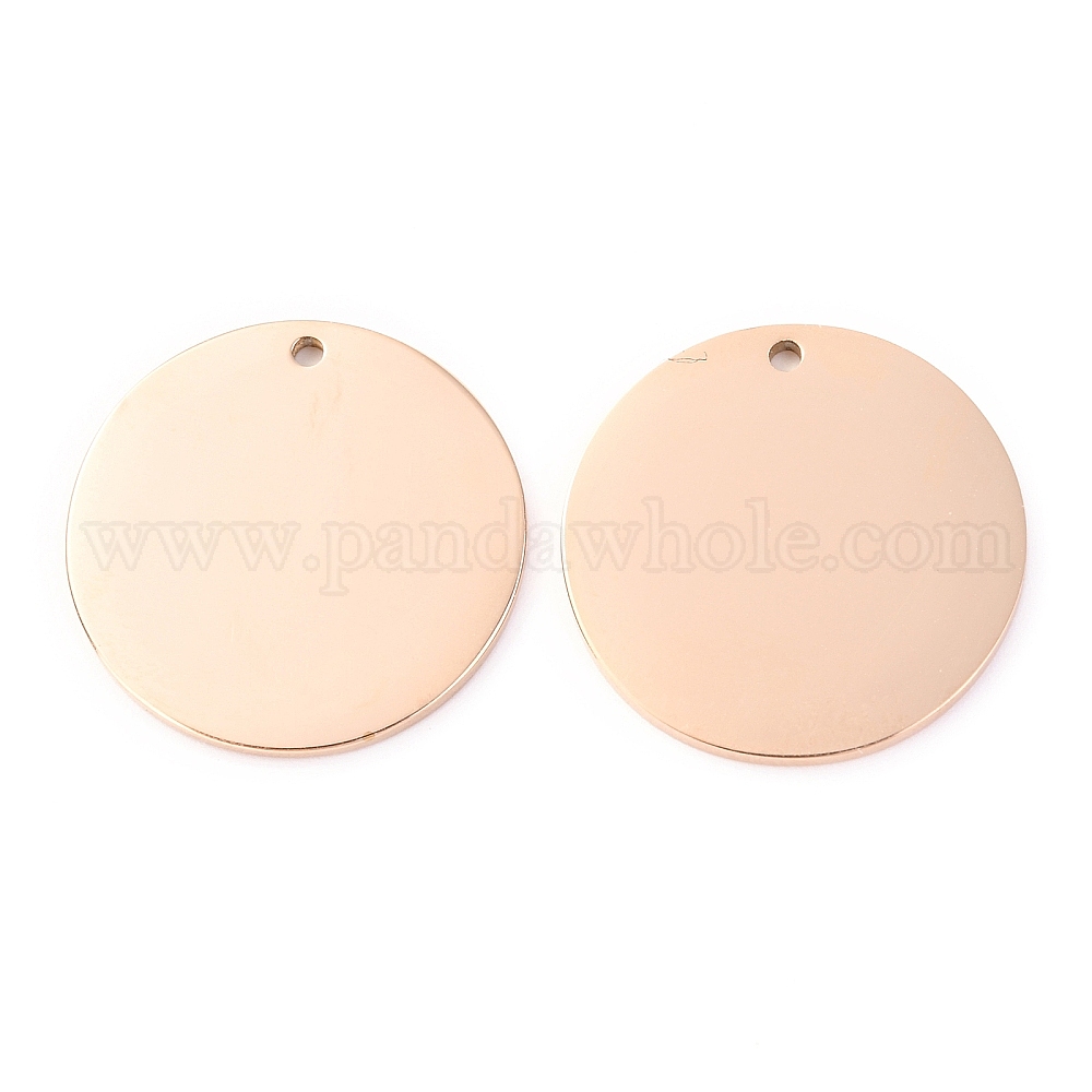 • Розовое Золото 304 подвески из нержавеющей стали, лазерная резка, штамповка пустой метки, плоско-круглые, розовое золото , 18x1.1 мм, отверстие : 1.2 мм