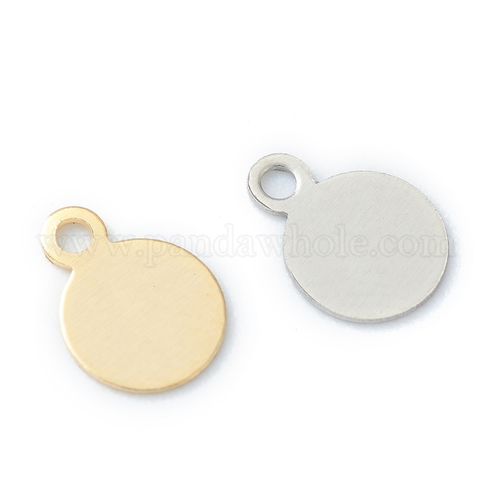 • Нержавеющая Сталь Цвет Не тускнеющие 304 подвески из нержавеющей стали, штамповка пустой метки, лазерная резка, плоско-круглые, цвет нержавеющей стали, 7x5x0.3 мм, отверстие : 1 мм