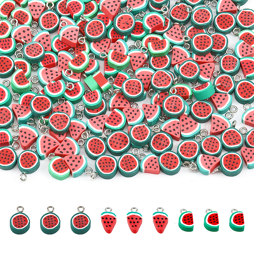 150 шт 3 стиль подвески из полимерной глины ручной работы, с железной петлей с платиновым покрытием, арбуз (02EYNT)