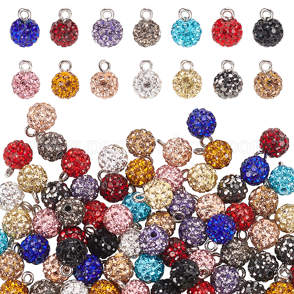 • (52) Непрозрачная лаванда Подвески ручной работы из полимерной глины со стразами, круглые подвески, с платиновыми тоновыми железными петлями, разноцветные, 10x8 мм, отверстие : 2 мм, 14 цветов, 6 шт / цвет, 84 шт / комплект