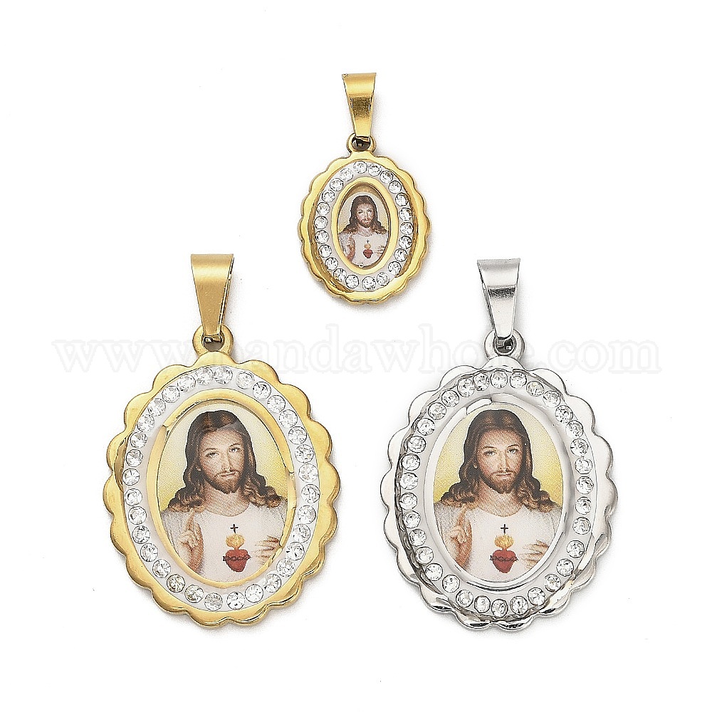 304 подвески из нержавеющей стали, овальные амулеты, с полимерной глиной кристалла горного хрусталем, ионное покрытие (ip)
