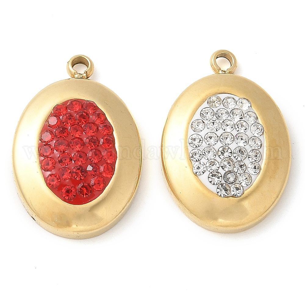 • Красный Полимерная глина стразами подвески, с 304 фурнитурой из нержавеющей стали, ручная полировка, овальный шарм, ионное покрытие (ip), красные, 17x11.5x3.5 мм, отверстие : 1.5 мм