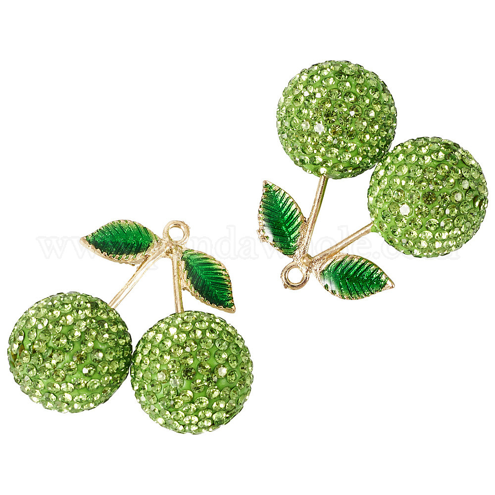 • Желто-Зеленый 2шт. подвески в виде вишен из сплава, с полимерной глиной горный хрусталь, золотой свет, желто-зеленый, 31~38x39.5~43x20~20.5 мм, отверстие : 2~2.2 мм