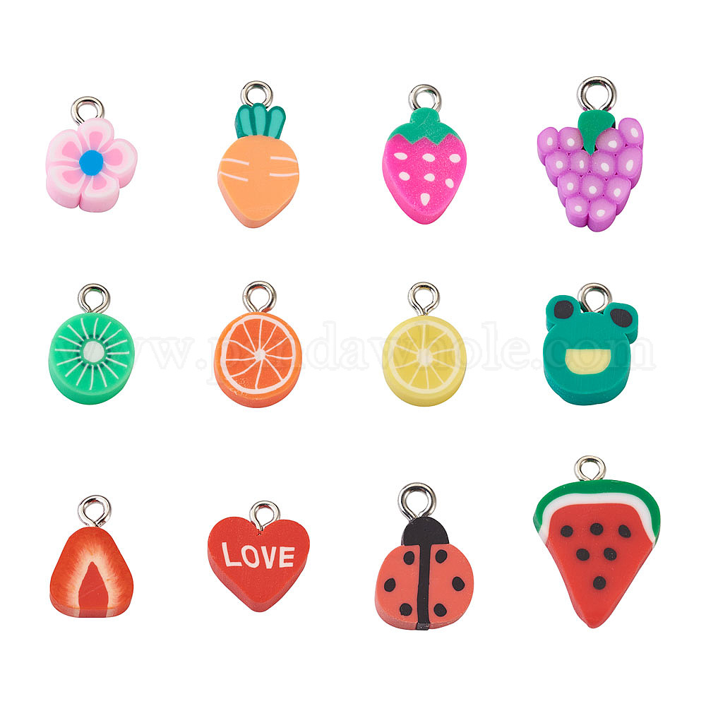 Подвески из полимерной глины ручной работы, с фурнитурой железной платинового оттенка, разнообразные (025YXF)