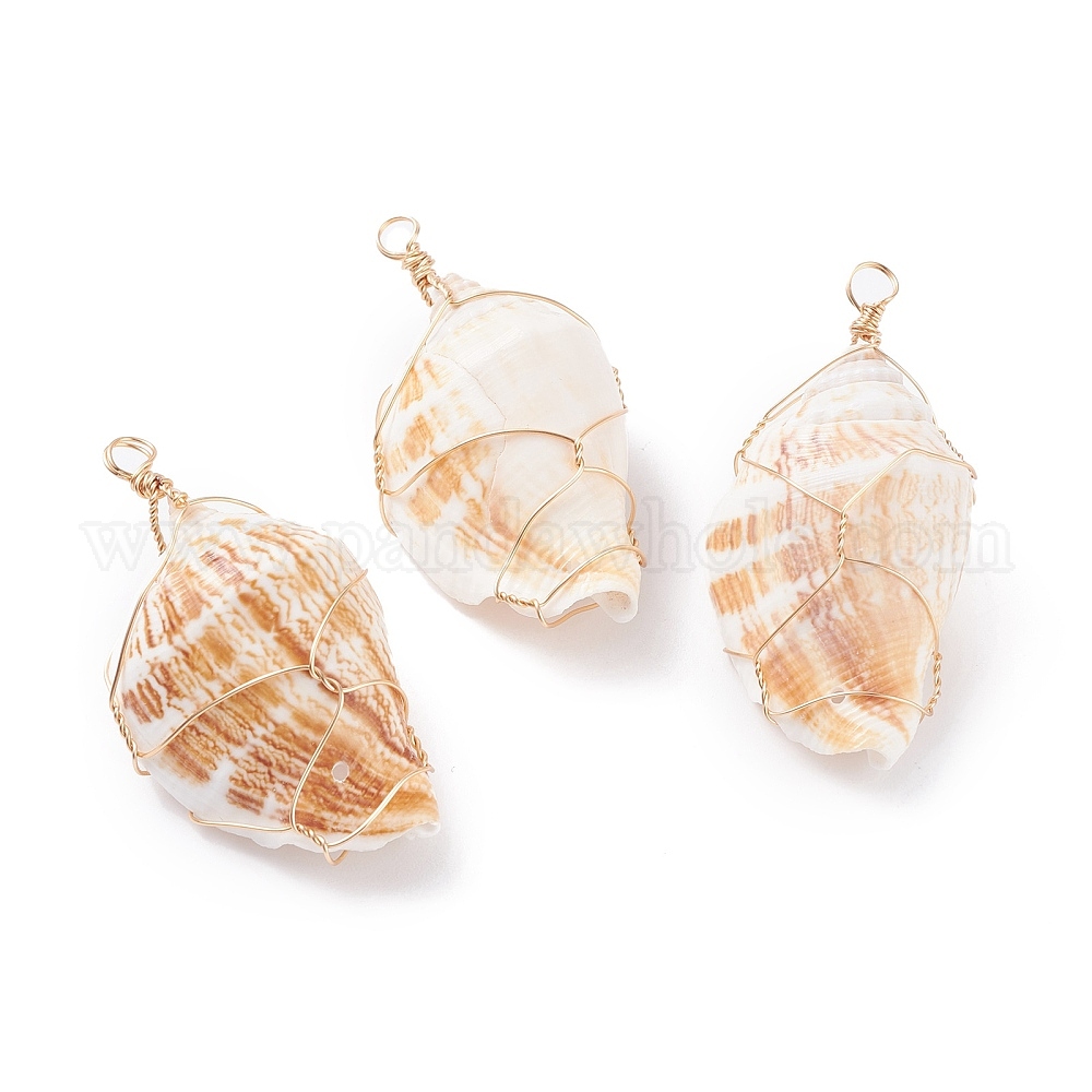 Большие подвески из натуральных ракушек, с позолоченным экологически чистым медным проводом.