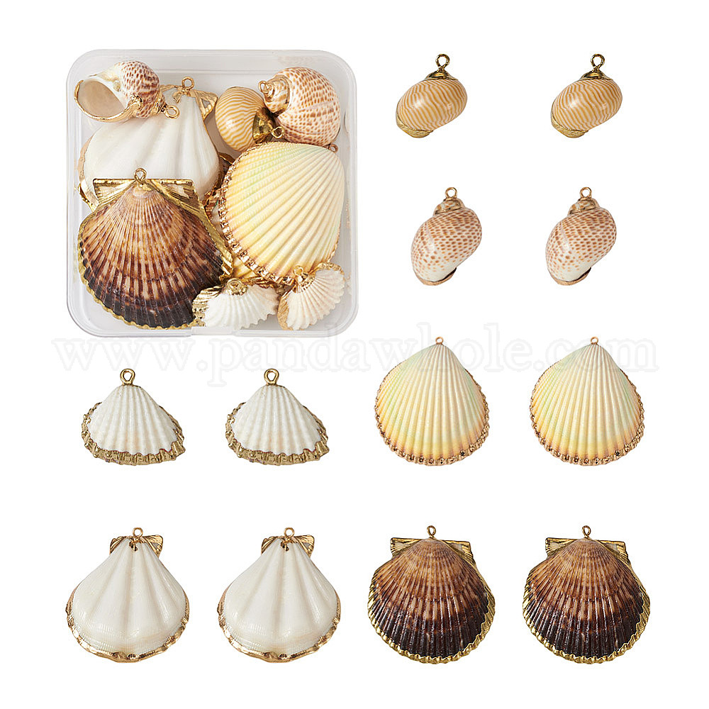 12шт 6 подвески в виде ракушек, с латунной фурнитурой , Подвески в виде ракушек и морских улиток, золотое и светлое золото