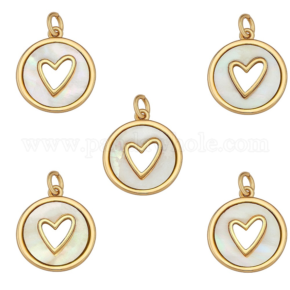Настоящие 18 к позолоченные латунные подвески, с естественной оболочке, долговечный, плоско-круглые с сердцем