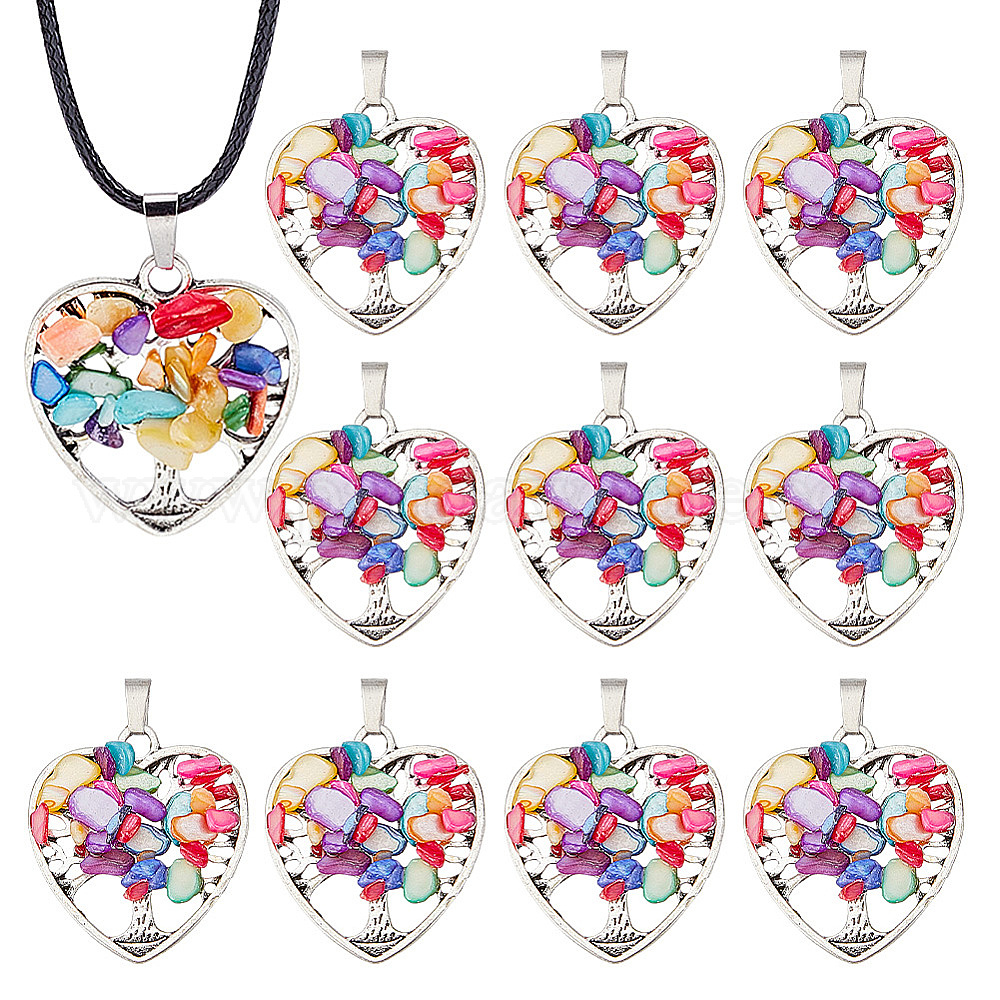 10 подвески из сплава шт., с синтетическими окрашенными бусинами из стружки и железной защелкой на дужках, платина, сердце с подвесками в виде деревьев (02FE1Q)
