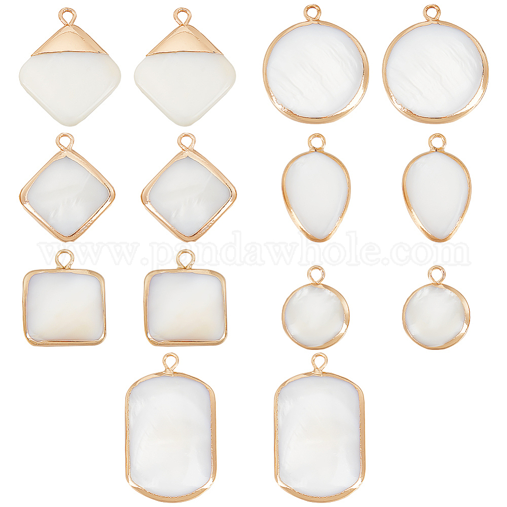 • Золотой 14 шт 7 стили натуральные пресноводные подвески из ракушек, с латунной фурнитурой , ромб и квадрат и плоский круглый, разнообразные, золотые, 16~29x13~17x4~5 мм, отверстие : 2 мм, 2 шт / стиль