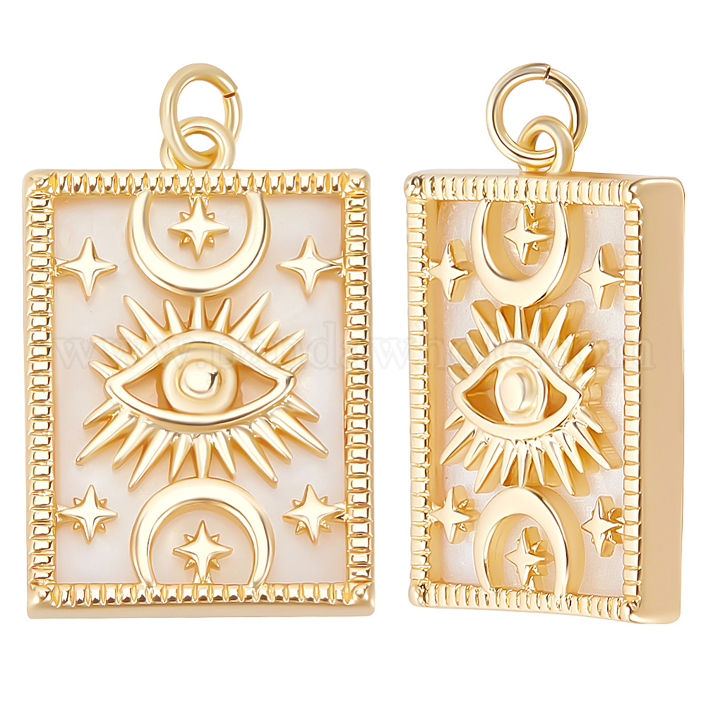 5 шт. Подвески из натуральных ракушек, с латунной фурнитурой , прямоугольник с подвеской в виде глаза, луны и звезды