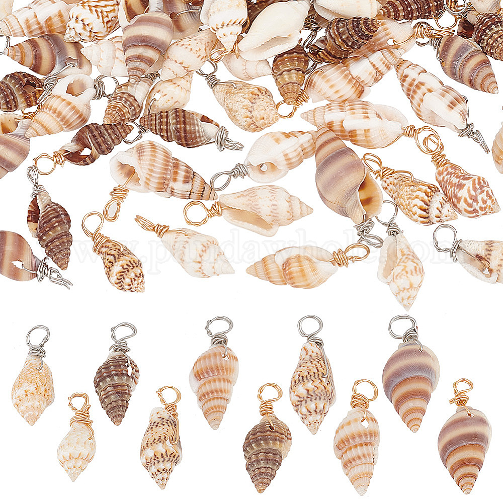 100шт 10 стили подвески из натуральных ракушек, Подвески в форме ракушки, обернутые медной проволокой