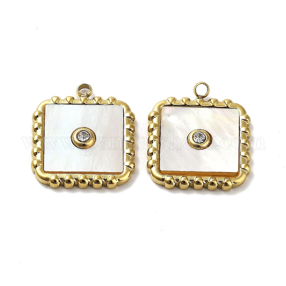 • Настоящее золото 18K Ионное покрытие (IP) 304 подвески из нержавеющей стали с белыми ракушками, квадратная подвеска с хрустальными стразами, реальный 18 k позолоченный, 18x15x3 мм, отверстие : 1.6 мм
