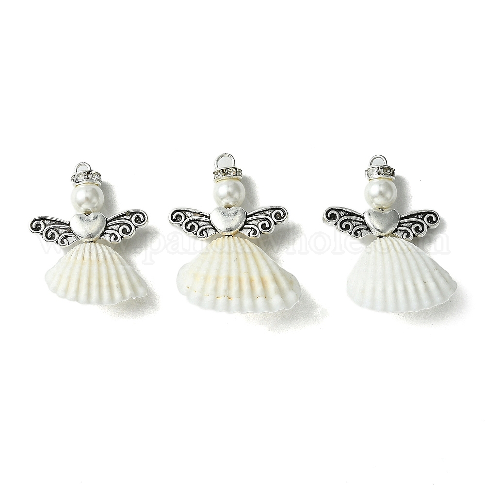 Сплав спиральные подвески оболочки, Подвески-ангелы с круглыми жемчужными бусинами-ракушками