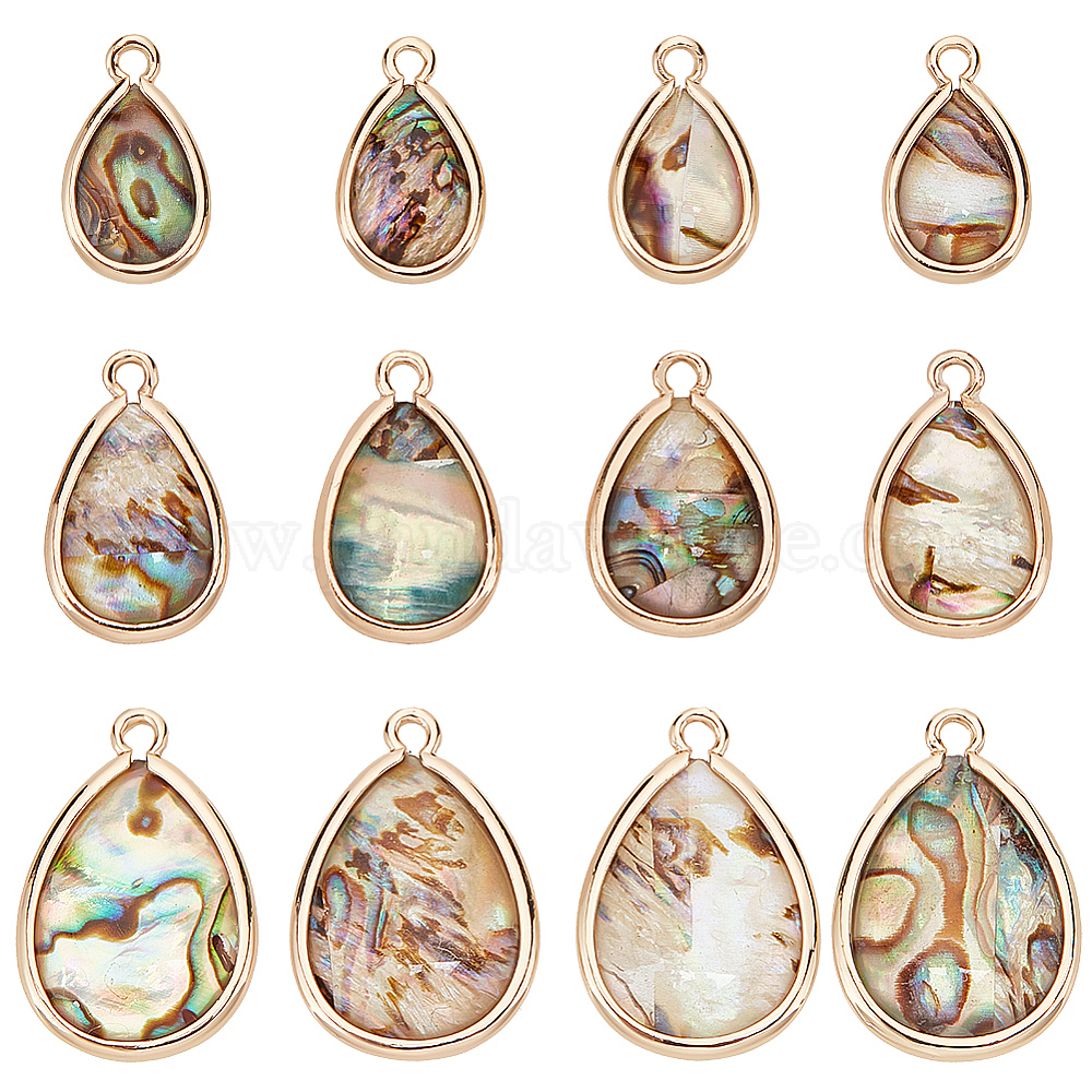 12шт 3 стили подвески из натуральной ракушки пауа, Подвески-капли из сплава со смолой