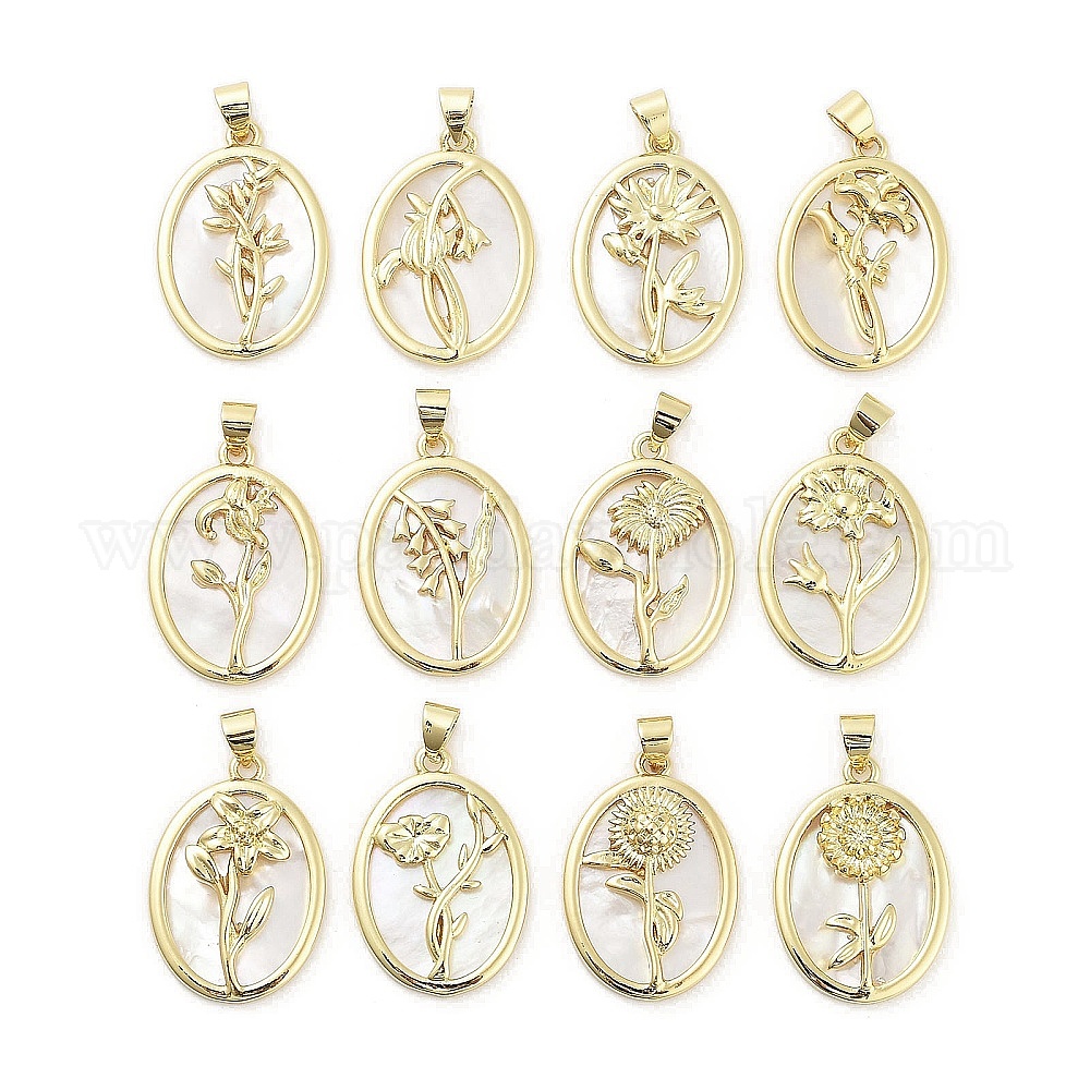 Стойки с латунными подвесками из ракушек, овал с цветочными подвесками, долговечный, без свинца и без кадмия