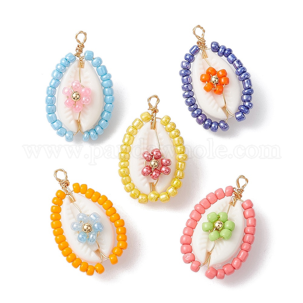 Стеклянные бусины из медной проволоки подвески-ракушки, подвески в форме ракушек, золотые