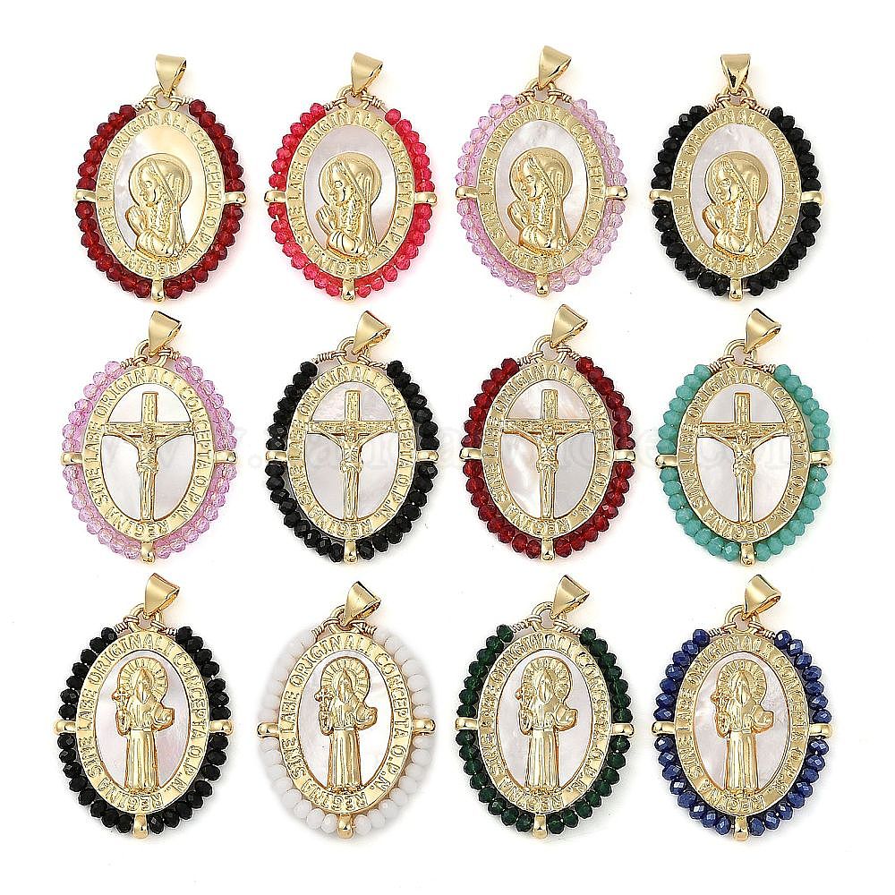 Стойка покрытие латунь паве ракушка религия подвески, овальные подвески со стеклом, реальный 18 k позолоченный, долговечный, без свинца и без кадмия