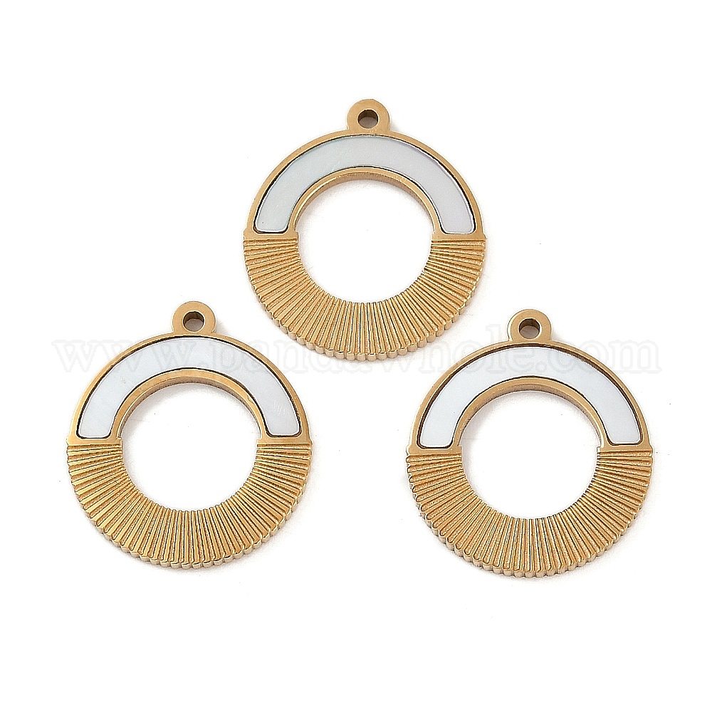 Ионное покрытие (ip) 304 подвески из нержавеющей стали, с паве-ракушкой, круглое кольцо-шарм