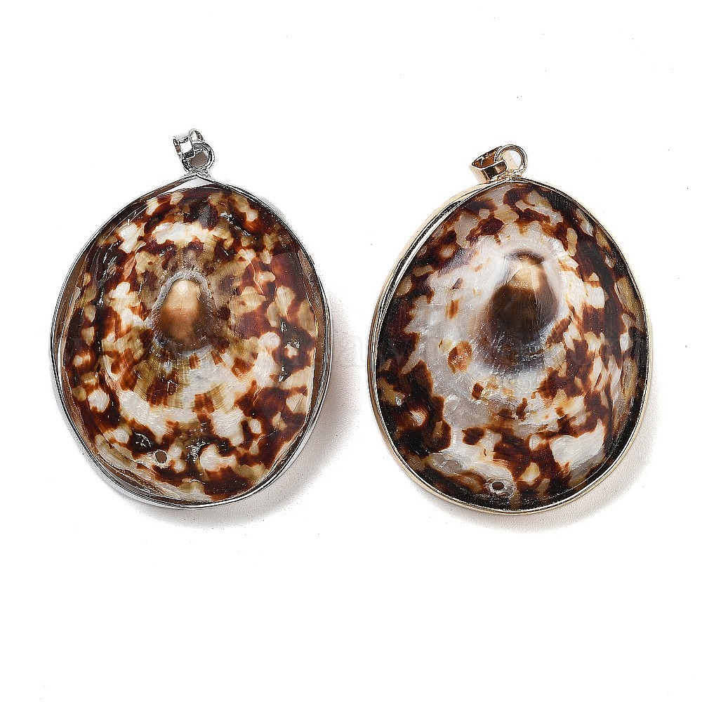 Гальванические подвески из натуральных ракушек, латунные овальные подвески с железными застежками-кнопками