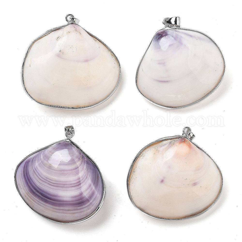 Подвески из натуральной белой ракушки с гальваническим покрытием, подвески в форме ракушки из латуни с платиновым покрытием и железными застежками на дужках