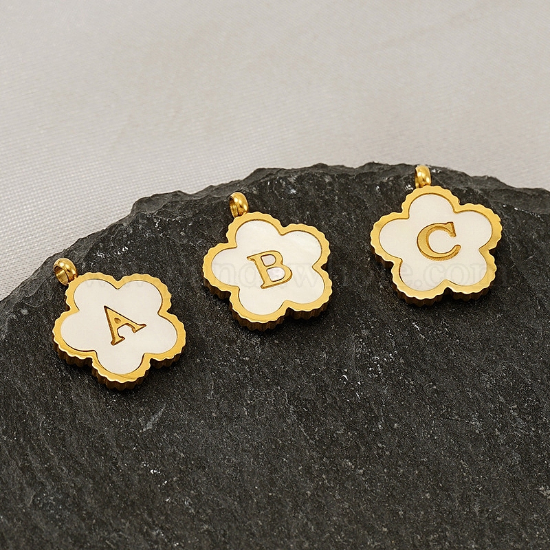 Подвески-буквы-цветы из нержавеющей стали золотистого тона с паве белого цвета