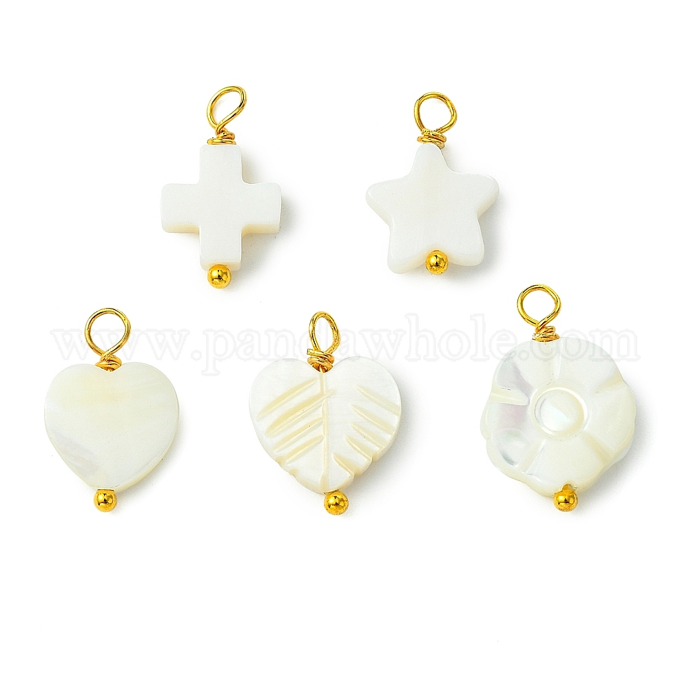 5шт 5 стили подвески из натуральных ракушек, крест звезда цветок сердце подвески, с золотым оттенком 304 петли из нержавеющей стали, разнообразные