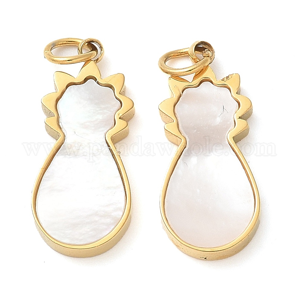 304 подвески в форме кошки из натуральной белой ракушки из нержавеющей стали, с прыжковых колец, ручная полировка, ионное покрытие (ip)