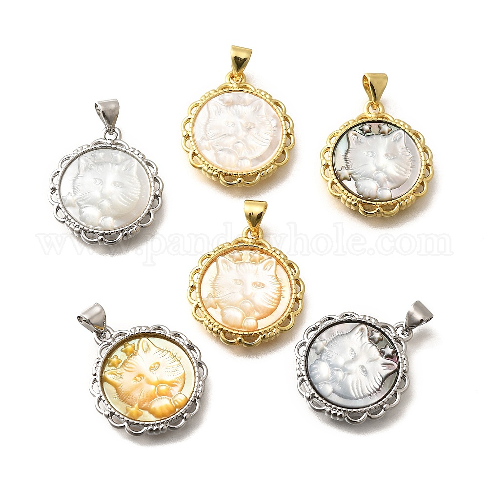 Подвески в виде кошки из натуральной ракушки, вырезанные из латуни, стойки покрытие, плоские круглые прелести