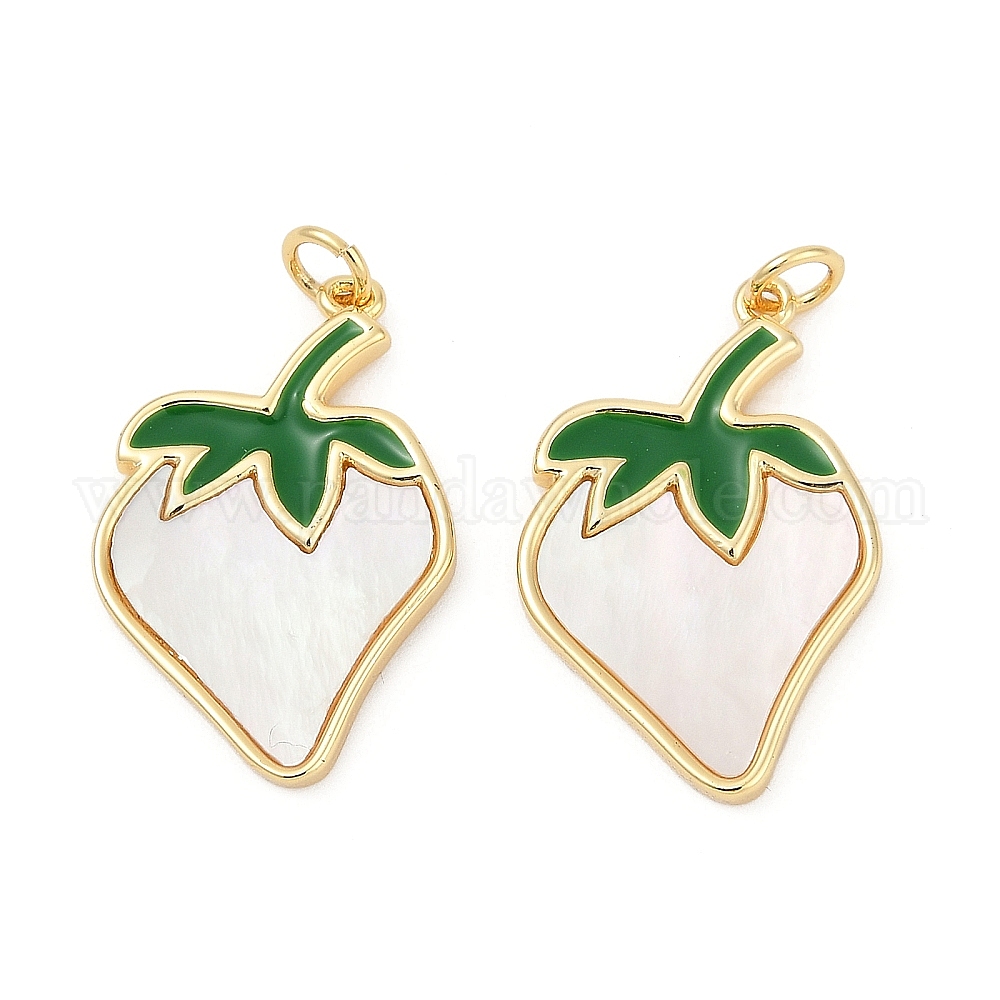 Подвески из латуни с натуральными белыми ракушками, подвески в виде клубники с зеленой эмалью, без кадмия и без свинца, прочное покрытие, стойки покрытие