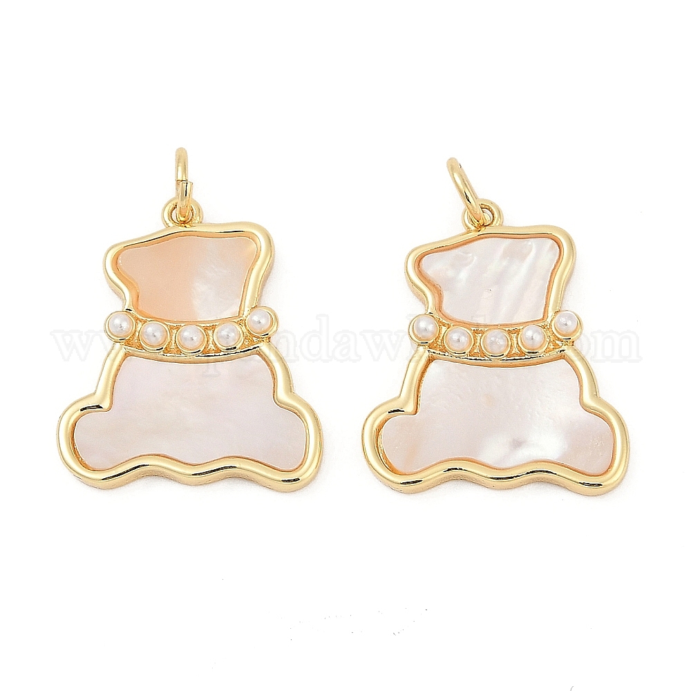 Подвески из латуни из натуральных ракушек, подвески в виде медведя с жемчужиной из АБС-пластика, без кадмия и без свинца, прочное покрытие, стойки покрытие