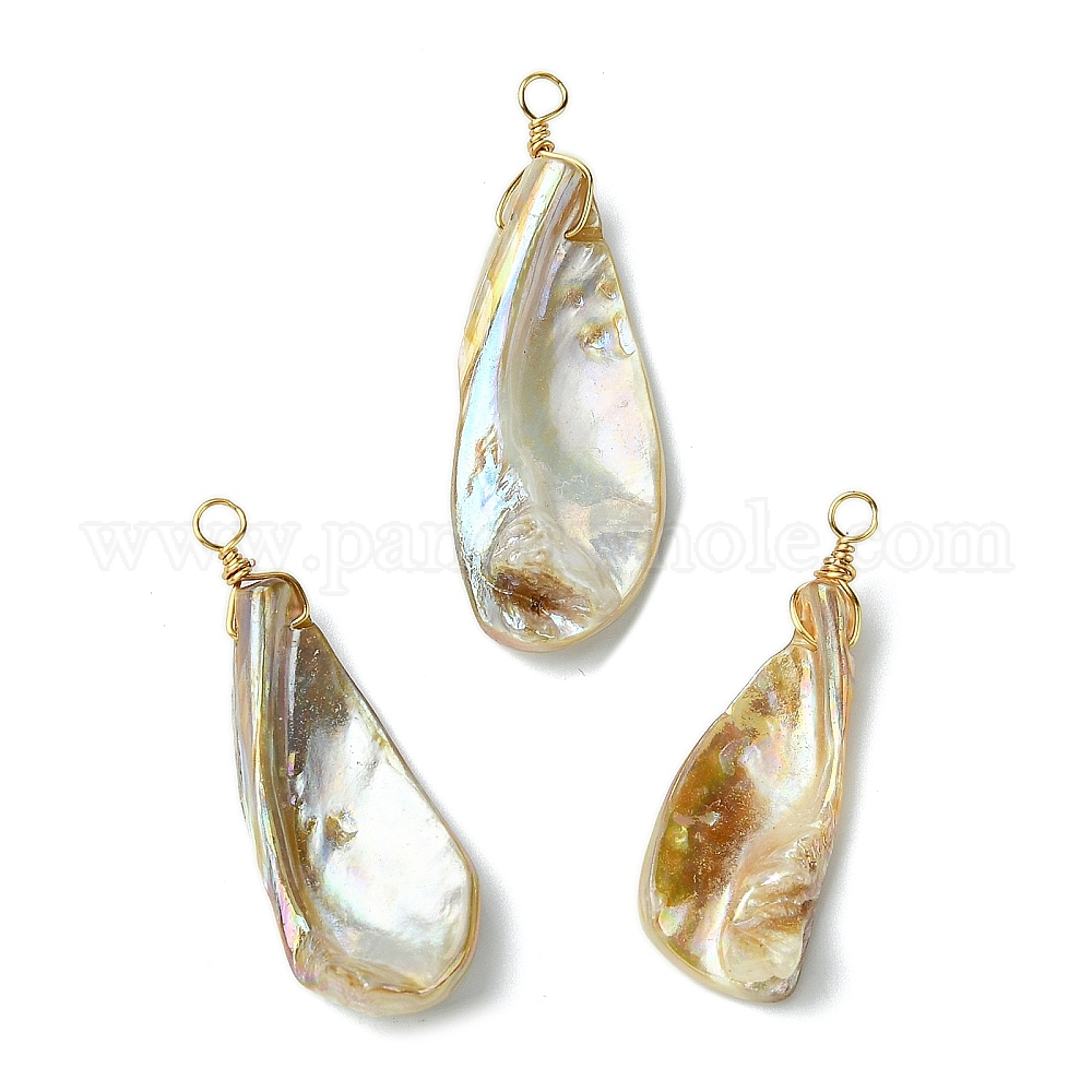 Гальванические подвески из натуральной пресноводной раковины, подвески-слезинки с круглыми петлями из экологически чистой медной проволоки, золотые
