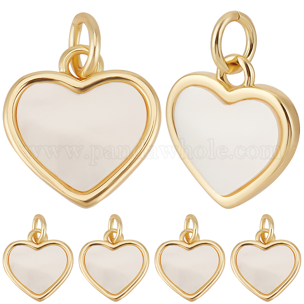 10 шт. латунные подвески в форме сердца из натуральной белой ракушки, с прыжковых колец