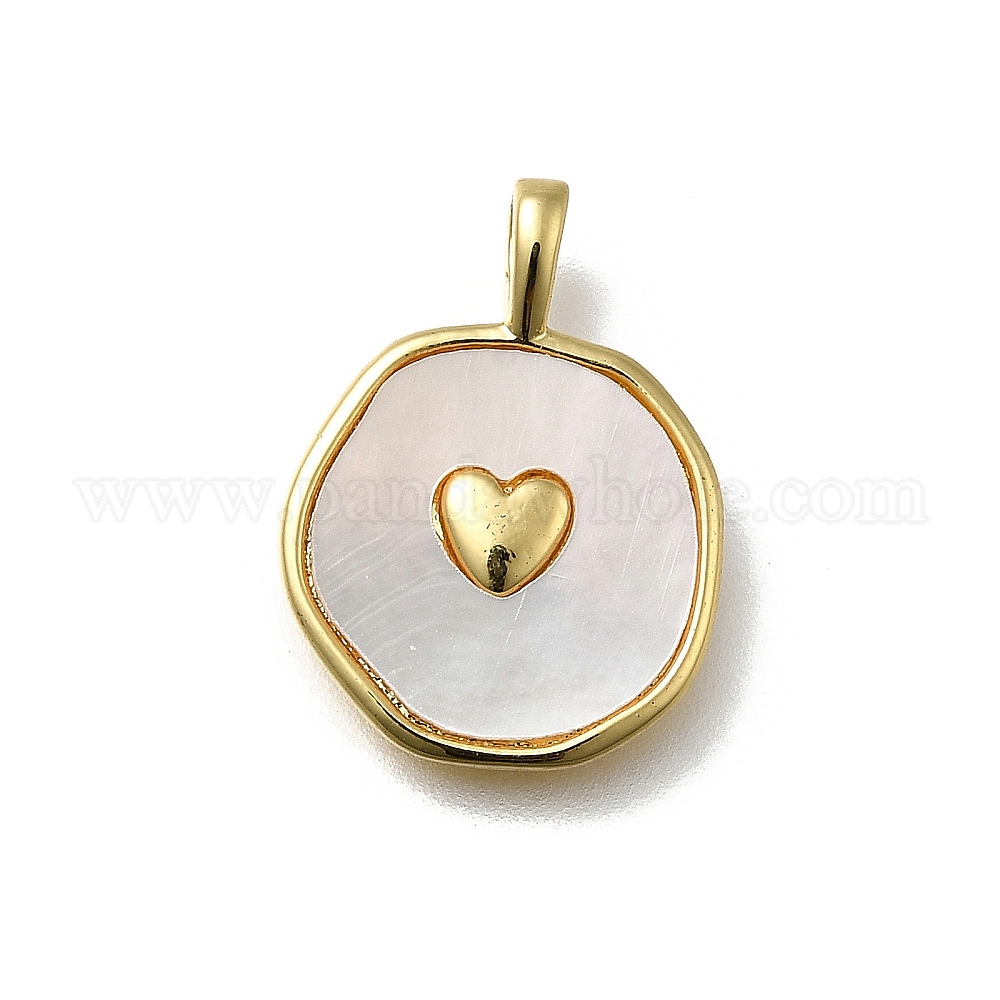 Подвески из латуни из натуральных ракушек, плоский круглый с сердечками, без кадмия и без свинца, стойки покрытие, долговечный