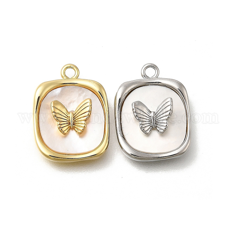 Подвески из латуни с натуральными белыми ракушками, прямоугольник с подвесками в виде бабочек, долговечный