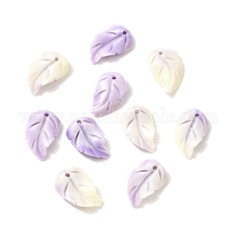 Подвески из синтетических окрашенных ракушек с резными перьями